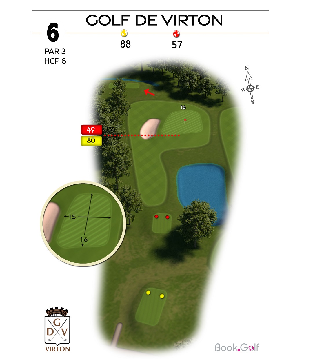 Le trou numéro 5 est un par 4 remarquable, reconnu comme le trou le plus long du parcours. Ce défi demande à la fois puissance et précision. Sur la gauche du trou, une zone protégée en hors limite s'étend sur toute la longueur, mettant en évidence l'importance d'un coup initial bien placé. Du côté droit, vous trouverez un bassin de rétention, un bunker de parcours stratégiquement positionné et un fossé qui ajoutent à la complexité du trou. Pour réussir ce trou avec succès, il est conseillé de jouer le premier coup du côté gauche de l'arbre isolé, permettant d'éviter les obstacles et de maximiser vos chances d'atteindre le fairway. En approchant du green, soyez attentif au bunker situé sur sa droite, qui nécessite une approche précise pour éviter les difficultés. Le trou numéro 5 du Golf Découverte Virton offre aux golfeurs une expérience passionnante, mettant à l'épreuve leur distance, leur précision et leur prise de décision. Préparez-vous à relever le défi et à profiter de l'environnement magnifique de ce trou exceptionnel.