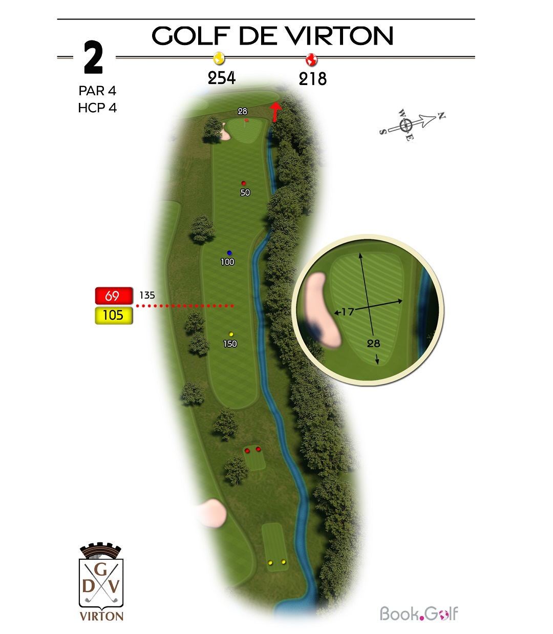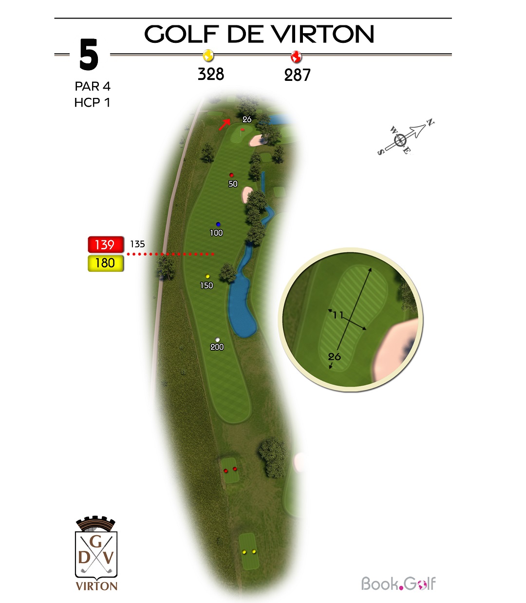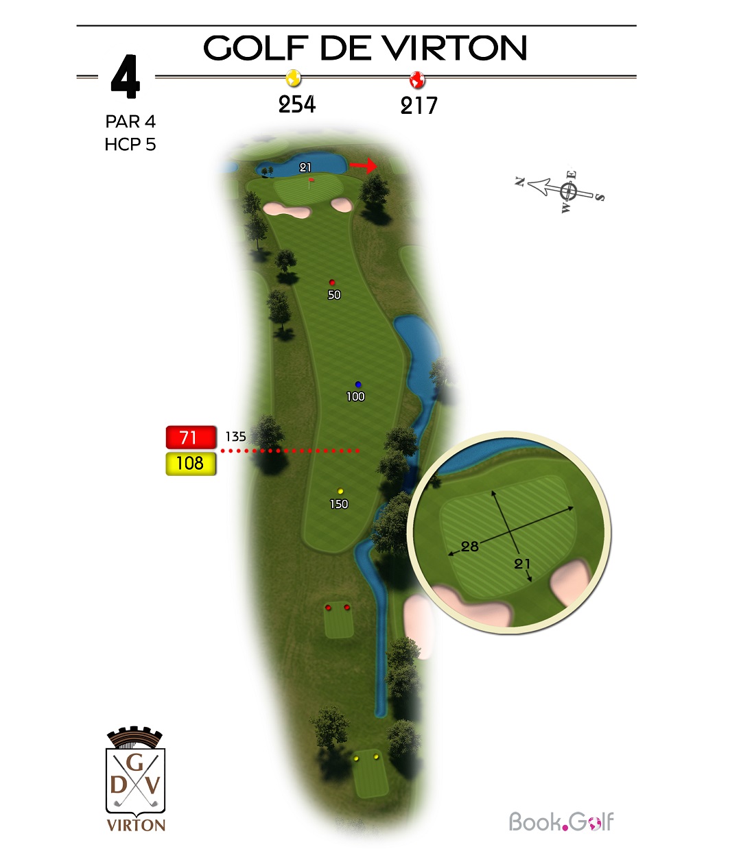 Le trou numéro 5 est un par 4 remarquable, reconnu comme le trou le plus long du parcours. Ce défi demande à la fois puissance et précision. Sur la gauche du trou, une zone protégée en hors limite s'étend sur toute la longueur, mettant en évidence l'importance d'un coup initial bien placé. Du côté droit, vous trouverez un bassin de rétention, un bunker de parcours stratégiquement positionné et un fossé qui ajoutent à la complexité du trou. Pour réussir ce trou avec succès, il est conseillé de jouer le premier coup du côté gauche de l'arbre isolé, permettant d'éviter les obstacles et de maximiser vos chances d'atteindre le fairway. En approchant du green, soyez attentif au bunker situé sur sa droite, qui nécessite une approche précise pour éviter les difficultés. Le trou numéro 5 du Golf Découverte Virton offre aux golfeurs une expérience passionnante, mettant à l'épreuve leur distance, leur précision et leur prise de décision. Préparez-vous à relever le défi et à profiter de l'environnement magnifique de ce trou exceptionnel.