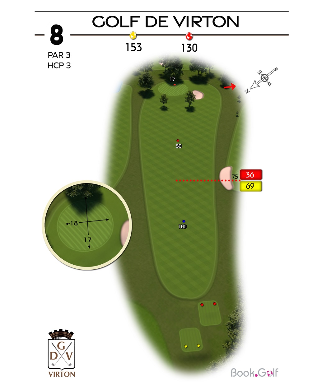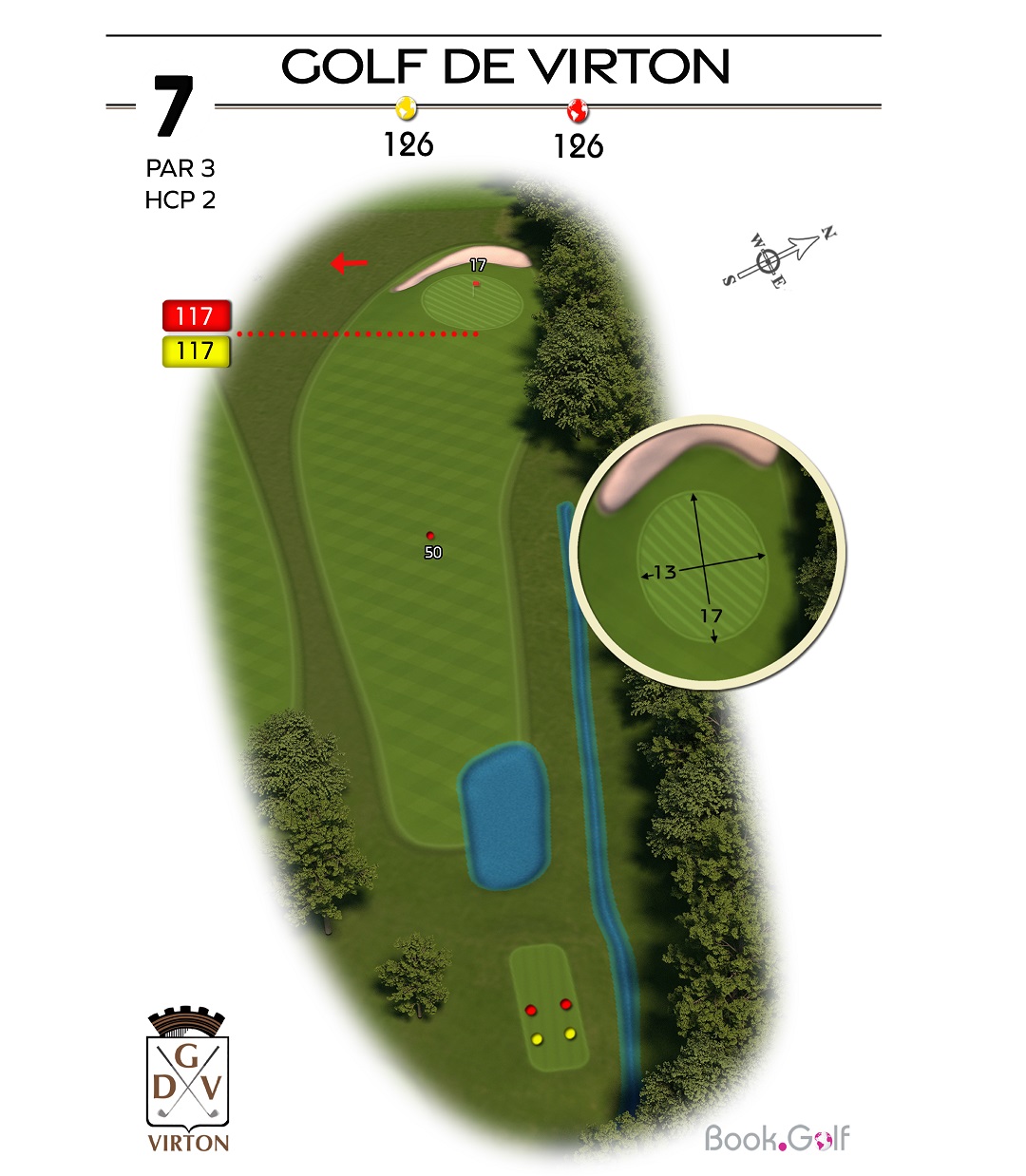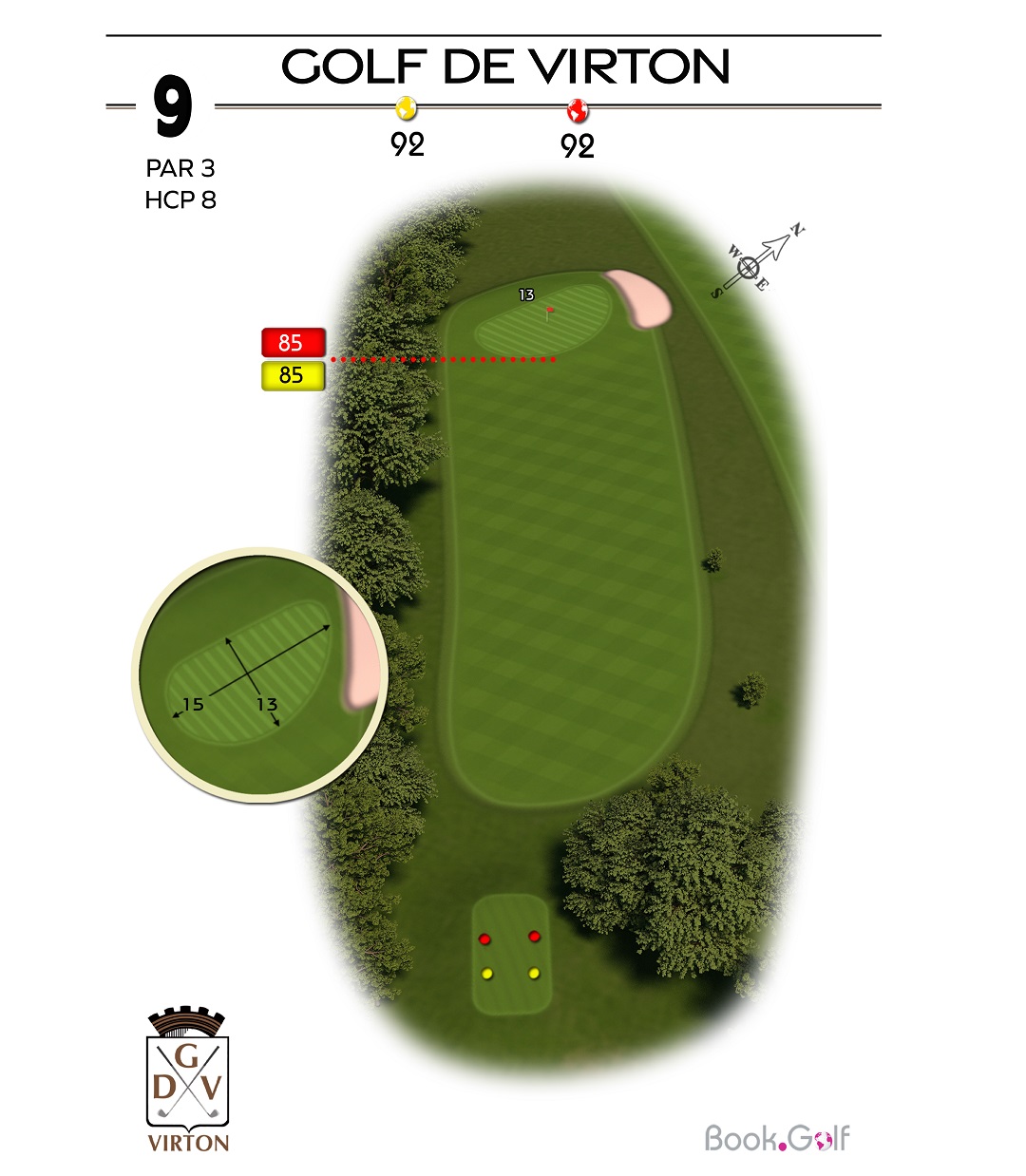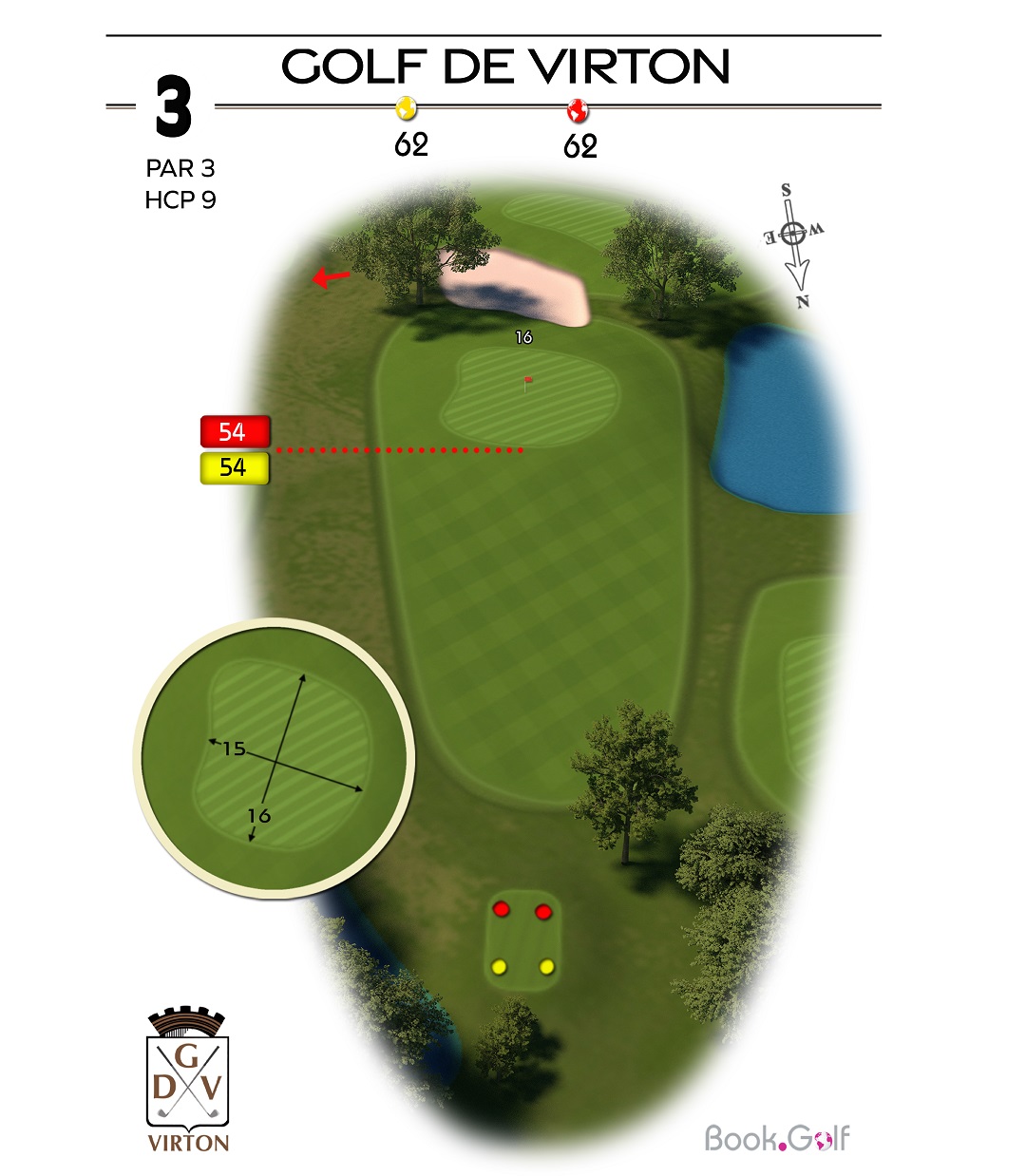 Le trou numéro 5 est un par 4 remarquable, reconnu comme le trou le plus long du parcours. Ce défi demande à la fois puissance et précision. Sur la gauche du trou, une zone protégée en hors limite s'étend sur toute la longueur, mettant en évidence l'importance d'un coup initial bien placé. Du côté droit, vous trouverez un bassin de rétention, un bunker de parcours stratégiquement positionné et un fossé qui ajoutent à la complexité du trou. Pour réussir ce trou avec succès, il est conseillé de jouer le premier coup du côté gauche de l'arbre isolé, permettant d'éviter les obstacles et de maximiser vos chances d'atteindre le fairway. En approchant du green, soyez attentif au bunker situé sur sa droite, qui nécessite une approche précise pour éviter les difficultés. Le trou numéro 5 du Golf Découverte Virton offre aux golfeurs une expérience passionnante, mettant à l'épreuve leur distance, leur précision et leur prise de décision. Préparez-vous à relever le défi et à profiter de l'environnement magnifique de ce trou exceptionnel.